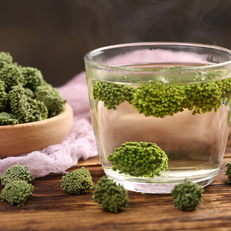 San Qi Hua is the flower of Tian Qi (aka Panax Notoginseng). Our San Qi Flowers are grown in the Wenshan region of Yunnan at an altitude of 1900 meters without the use of pesticides or fertilizers.