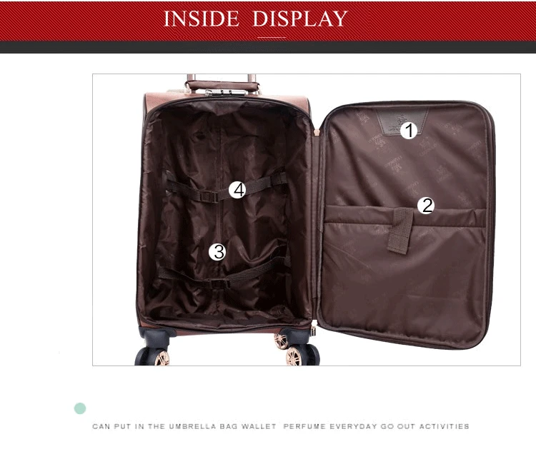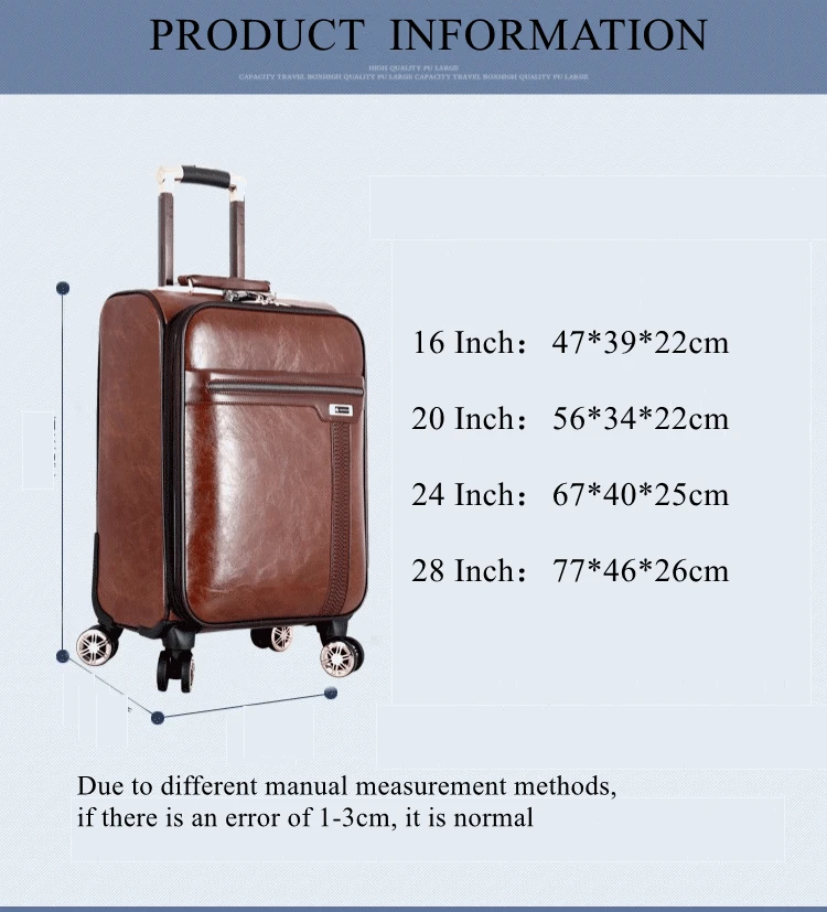 PU lethrt Rolling Luggage Suitcase Travel Trollry Luggage Suitcase18 Inch 20 Inch 24 Inch Softside Luggage with Spinner Wheels