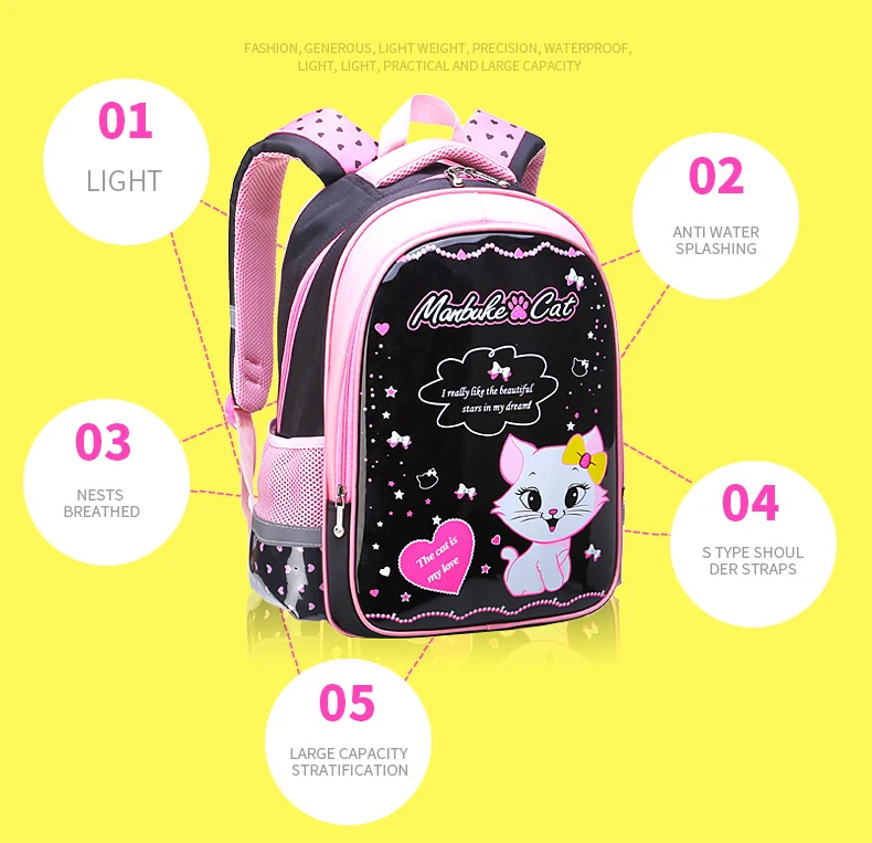 Sweet cat girl School Bags Cartoon Pattern Kid Backpacks Children School Backpack Girl Bag light Weight Girls mochilas infantil